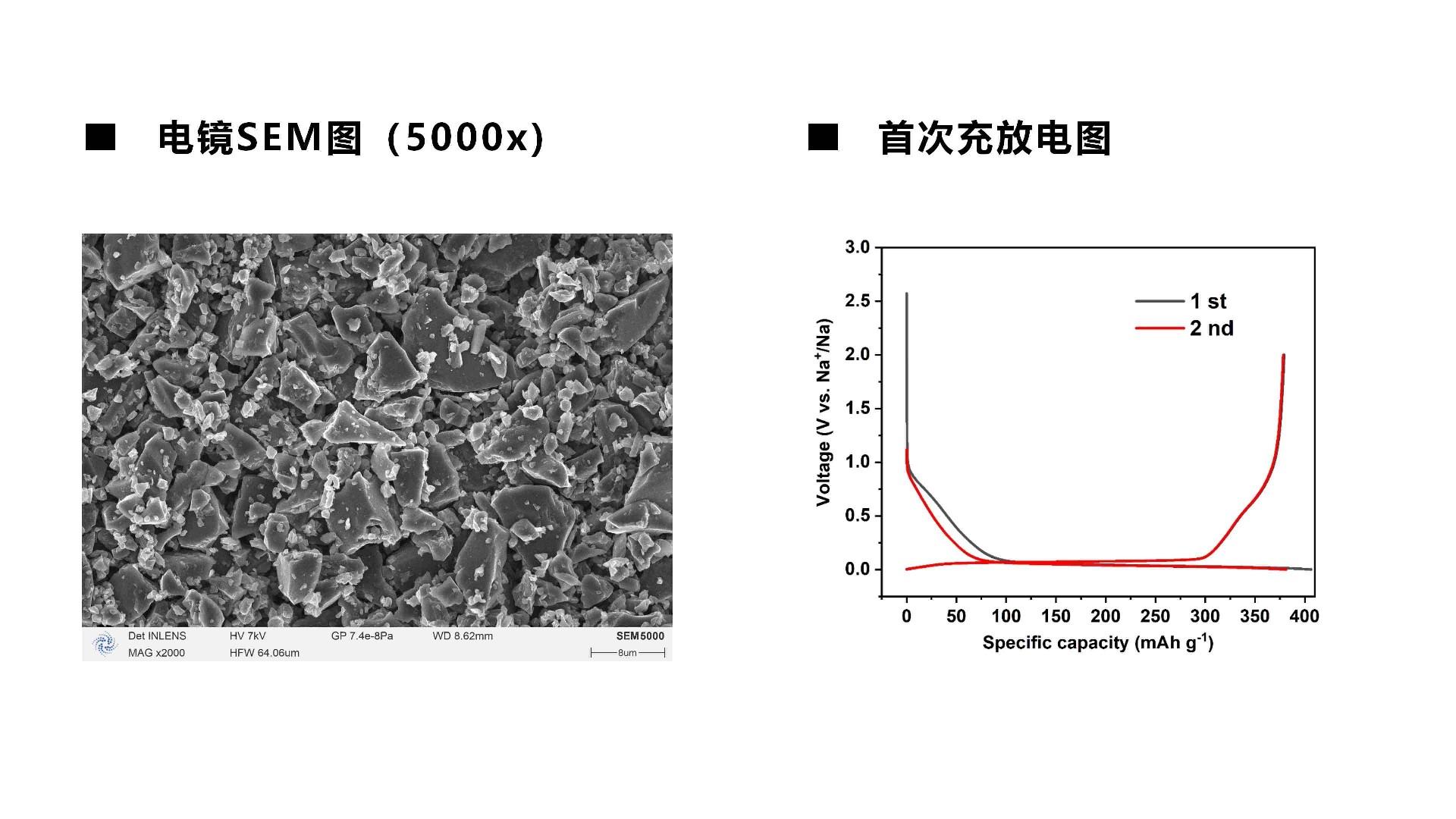 电化学性能 | 可逆容量 | mAh/g | ≥350 | 379.4 | 半电池测试,蓝电多功能电池测试系统 MIKROUNA双工位手套箱,H20≤0.0lppm,02≤0.0lppm |
